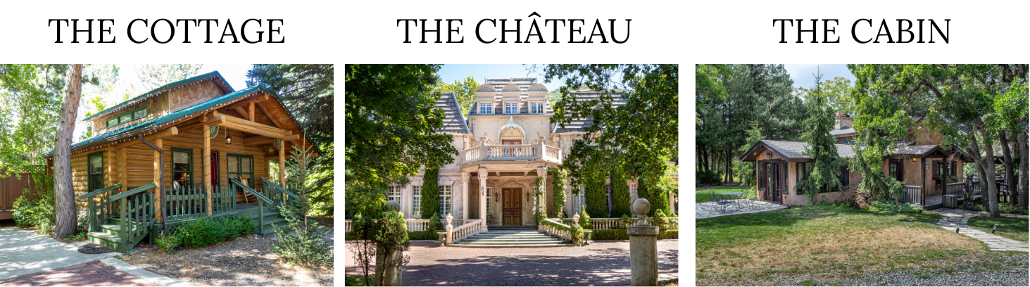The Château is an English style manor nestled in the trees along the Little Cottonwood Creek. The Château boasts four exquisite sleeping rooms, each with its own private bathroom. With a full chef's kitchen, expansive living areas, two Grand dining rooms, and outdoor wrap around patios, The Château offers a luxurious experience for any occasion.